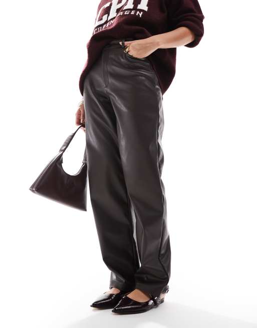 ASOS DESIGN - Brune bukser med lige ben i læderlook