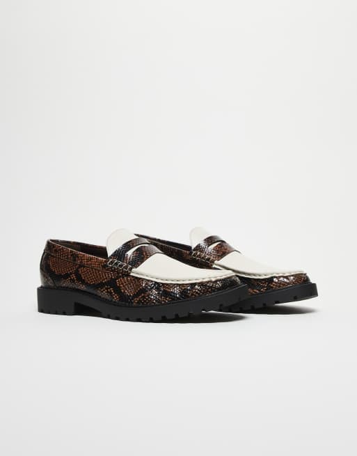 ASOS DESIGN - Brune loafers med imiteret slangeskindsdesign, kontrasterende overdel og rillet sål