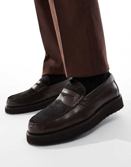 ASOS DESIGN - Brune penny-loafers med detalje i pels