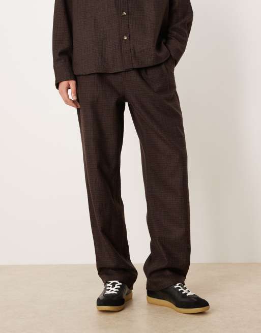 ASOS DESIGN - Brune posede bukser med tern i uld - Del af sæt
