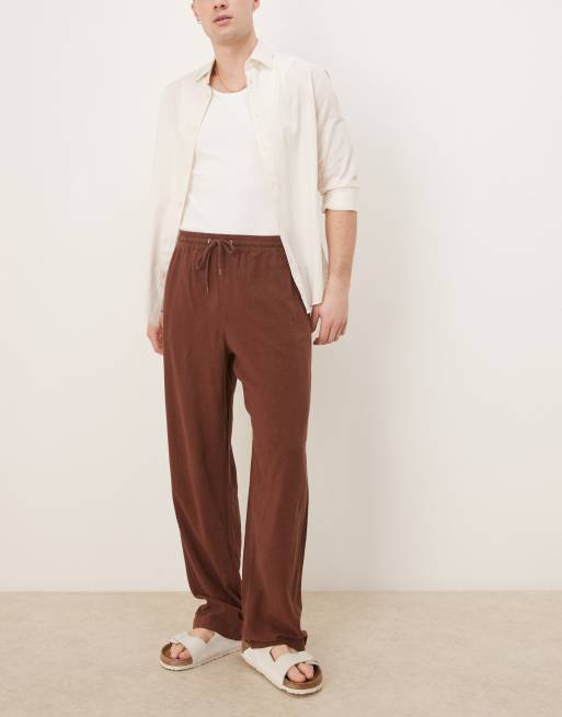 ASOS DESIGN - Brune pull-on-bukser i hørblanding i poset pasform