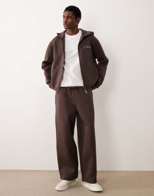 ASOS DESIGN - Brunt afslappet sæt med hættetrøje med lynlås og joggingbukser