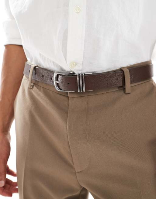 ASOS DESIGN - Brunt bælte i imiteret læder med spænde med tredobbelt design