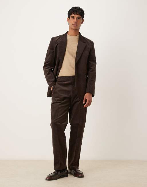 ASOS DESIGN - Brunt jakkesæt i bomuldsfløjl med regular fit-pasform