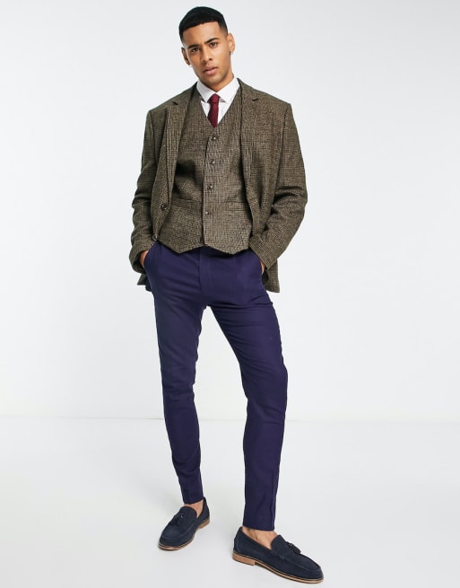ASOS DESIGN - Brunt jakkesæt med pepitatern i smal pasform
