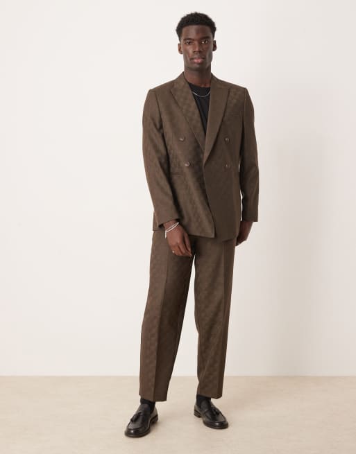 ASOS DESIGN - Brunt smalt sæt med skaktern i jacquard