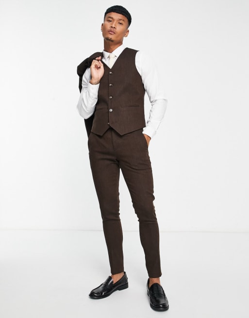 ASOS DESIGN - Brunt super skinny jakkesæt i tweed-uldblanding