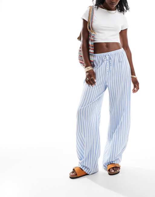 ASOS DESIGN - Bukser med barrel-ben, løbesnor i taljen og blå striber i poplin