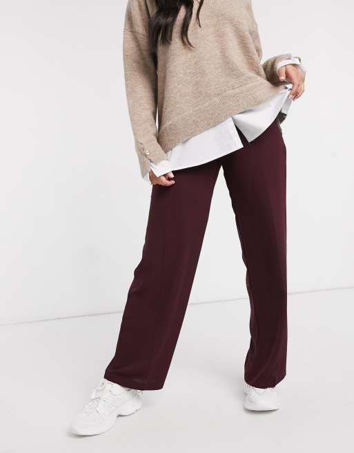 ASOS DESIGN - Bukser med høj talje og vide ben og ren høj talje i bordeaux