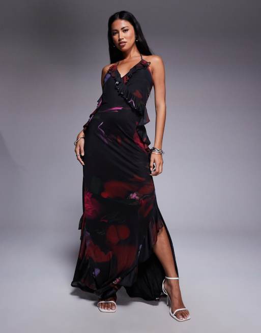 ASOS DESIGN - Cami-maxikjole med flæsedetaljer og blomstermønster i mesh