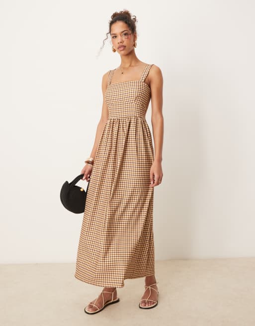ASOS DESIGN - Cami-midikjole med brune gingham-tern i bengalin