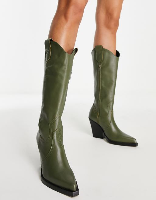 ASOS DESIGN - Camouflage - Olivengrønne western-knæstøvler i premium-læder