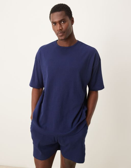 ASOS DESIGN - Capsule Collection - Oversized marineblå T-shirt i ribstrik