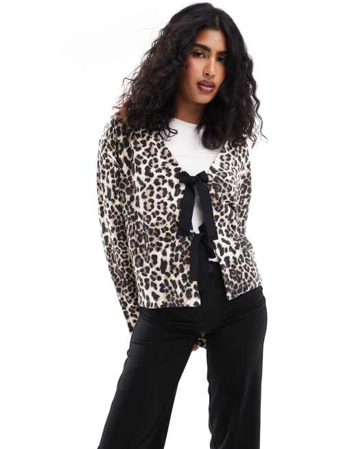 ASOS DESIGN - Cardigan i kraftig loopback med bindefront og leopardprint