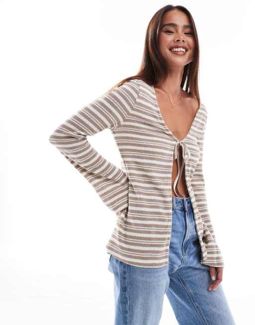 ASOS DESIGN - Cardigan med bindebånd foran og beige/hvide striber