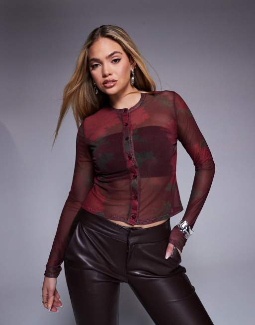 ASOS DESIGN - Cardigan med knapper og blomsterprint i mesh