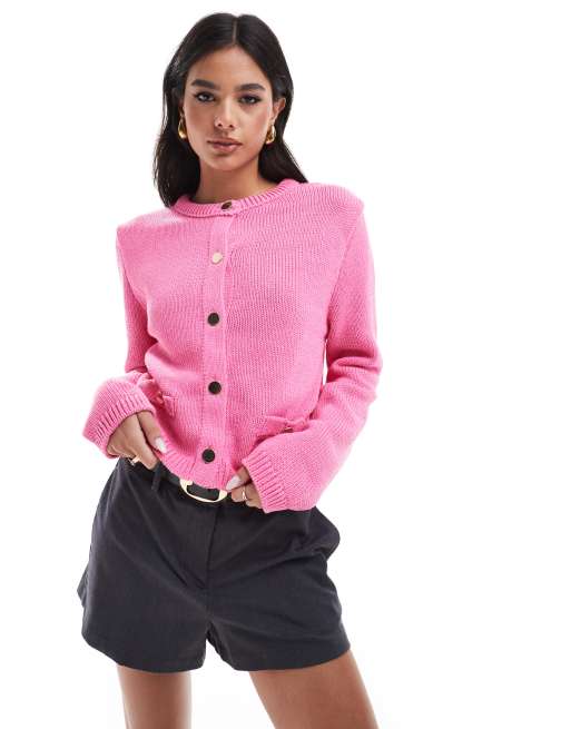 ASOS DESIGN - Cardigan med rund hals og lommedetaljer i pink