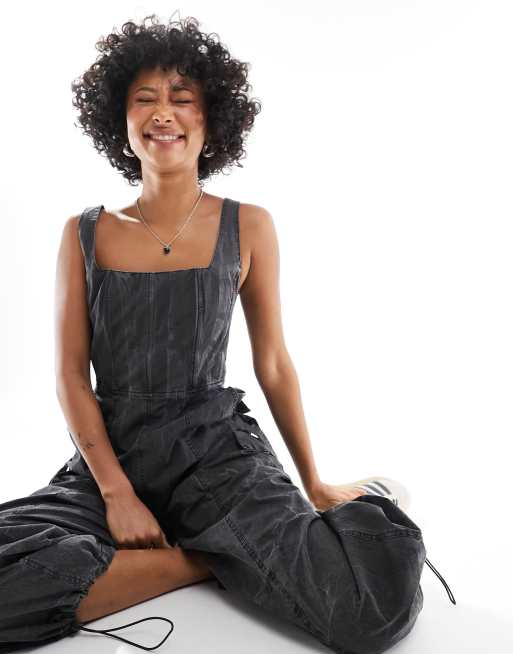 ASOS DESIGN - Cargo-jumpsuit med korset i vasket koksgrå