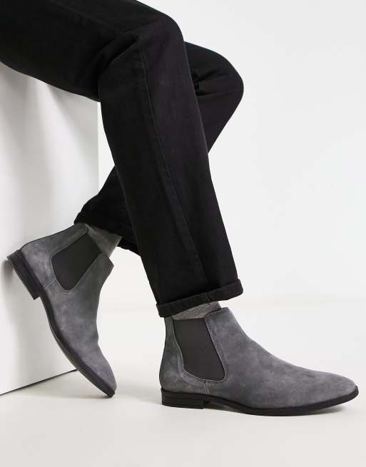 ASOS DESIGN – Chelsea-støvler i gråt ruskind med sort sål