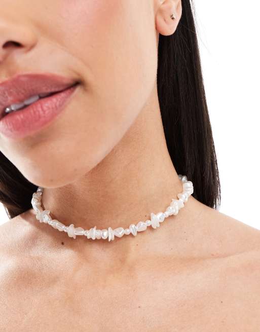 ASOS DESIGN - Choker-halskæde med imiterede perler i forskellige størrelser