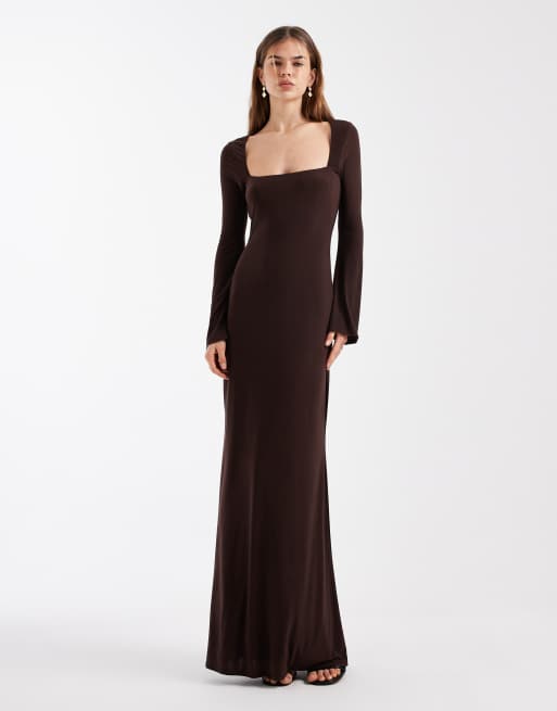 ASOS DESIGN - Chokoladebrun blød maxikjole med bred firkantet hals