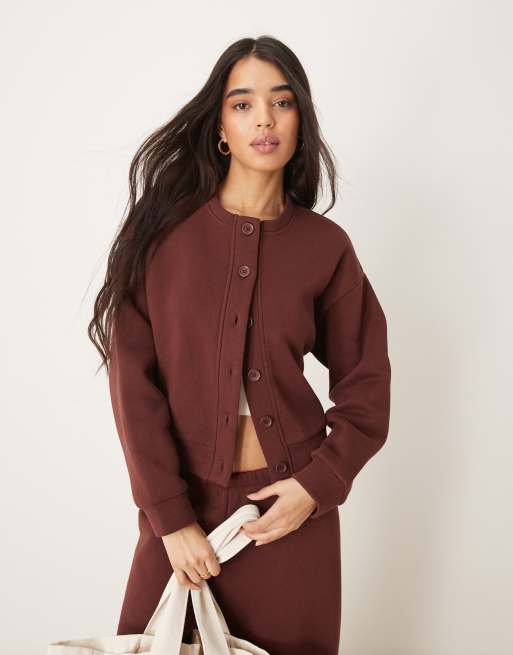 ASOS DESIGN - Chokoladebrun cardigan med rund hals i sweatshirt-stof - Del af sæt