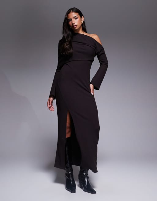 ASOS DESIGN - Chokoladebrun chunky offshoulder-midikjole med foldet kant