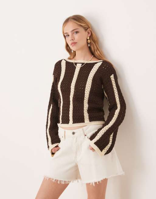 ASOS DESIGN - Chokoladebrun hæklet strikket trøje med lodrette striber