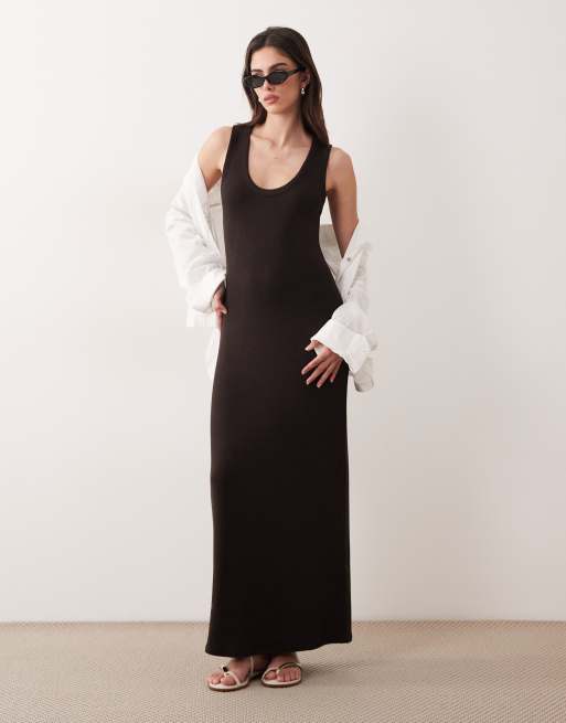 ASOS DESIGN - Chokoladebrun let maxikjole i bouclé med dyb rund hals