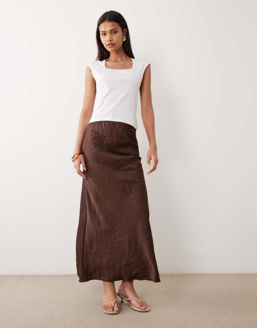 ASOS DESIGN - Chokoladebrun maxinederdel i knust satin