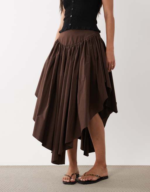 ASOS DESIGN - Chokoladebrun midinederdel med voluminøs kant
