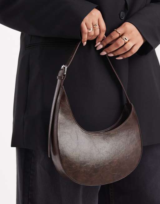 ASOS DESIGN - Chokoladebrun og forvasket skuldertaske med asymmetrisk snit og dyb rund hals samt spændedetalje