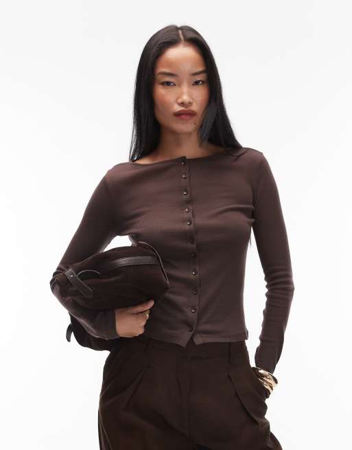 ASOS DESIGN - Chokoladebrun og langærmet top med knapper