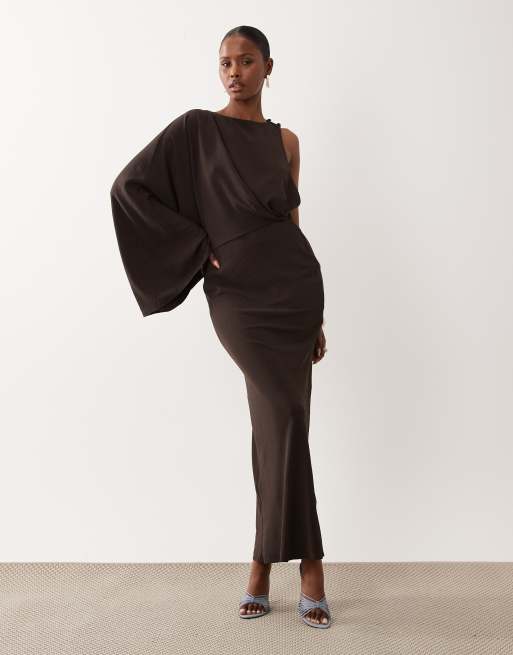 ASOS DESIGN - Chokoladebrun oneshoulder-maxikjole med draperet ryg og søjlesnit