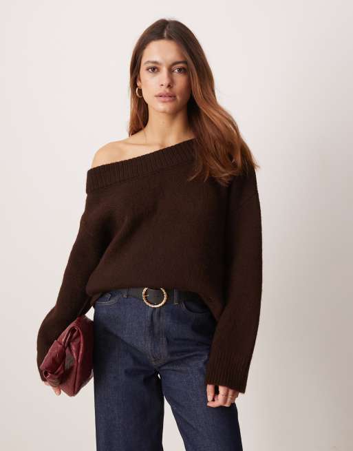 ASOS DESIGN - Chokoladebrun oneshoulder-trøje