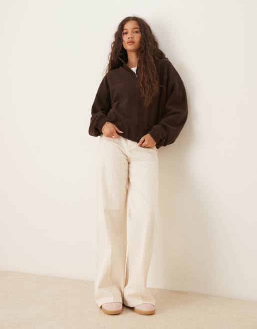ASOS DESIGN - Chokoladebrun polarfleece med lynlås i halsen