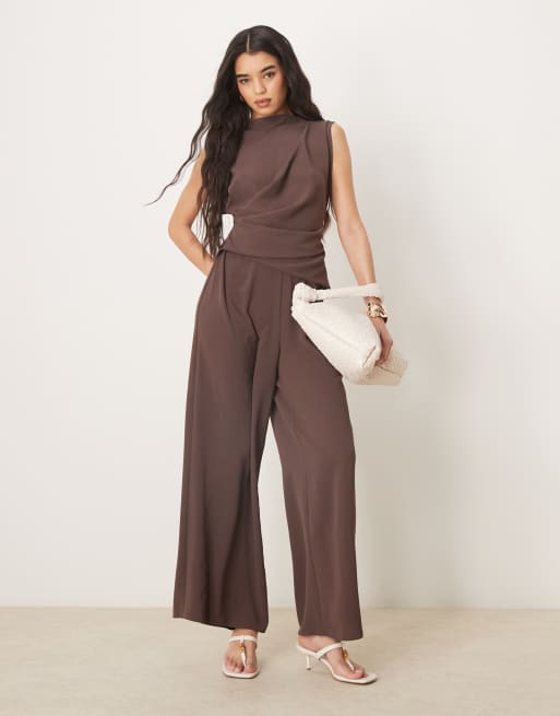 ASOS DESIGN - Chokoladebrun ærmeløs jumpsuit med rynket talje