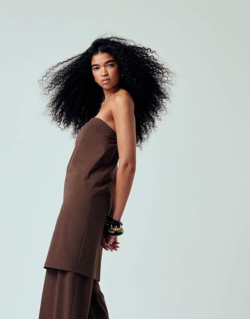 ASOS DESIGN - Chokoladebrun skræddersyet longline-top med kjortel - Del af sæt