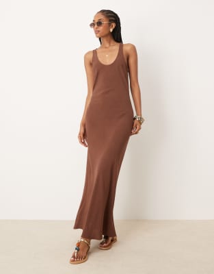 ASOS DESIGN - Chokoladebrun smock-maxikjole med pufærmer og lav ryg