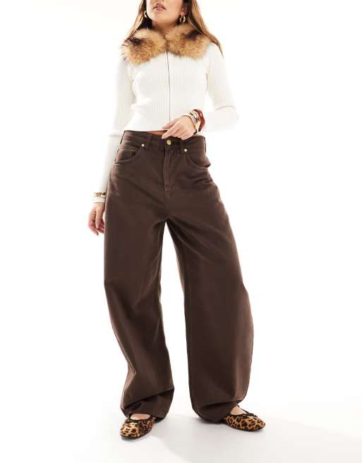 ASOS DESIGN - Chokoladebrune jeans med høj talje og tøndeformede ben