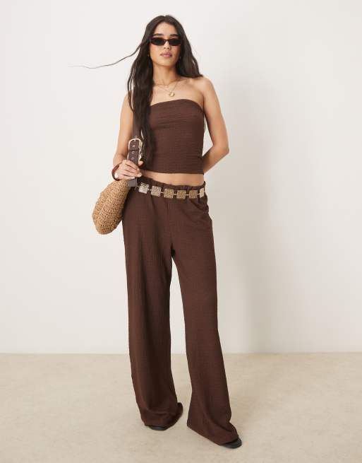 ASOS DESIGN - Chokoladebrunt sæt med bandeau-top og bukser med vide ben og tekstur