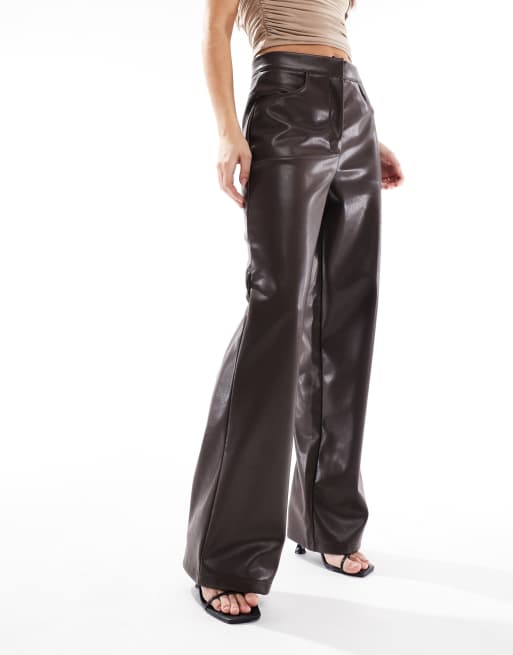 ASOS DESIGN - Chokoladefarvede bukser med vide ben i læderlook