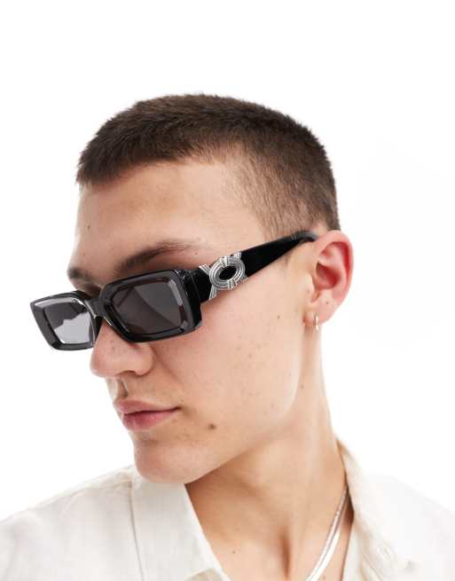 ASOS DESIGN - Chunky, firkantede solbriller med skråt stel og sølvfarvede detaljer i sort i 90'er-stil