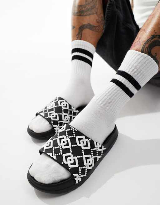 ASOS DESIGN - Chunky og sorte sliders med monogram-detalje