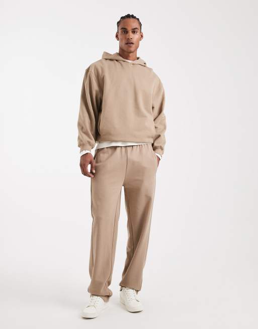 ASOS DESIGN - Circular Design Collection - Beige joggingbukser med lige ben i kraftigt stof på 400 gsm