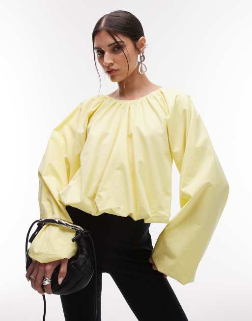 ASOS DESIGN - Citrongul bluse med volumen og puffet kant