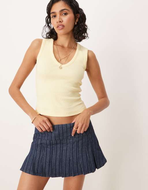 ASOS DESIGN - Citrongul ribstrikket top med V-hals