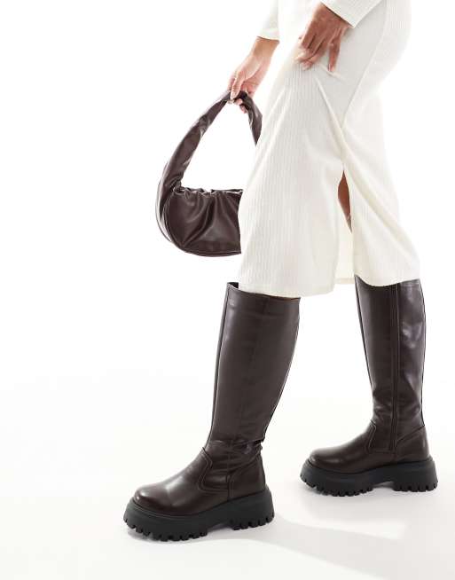 ASOS DESIGN - Corey - Brune og chunky knæstøvler med flad sål