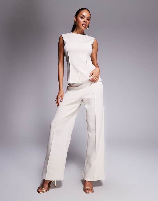 ASOS DESIGN - Cremefarvede bløde bukser med brede ben og sømdetaljer - Del af sæt