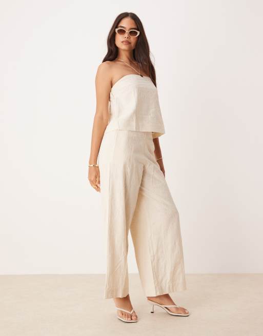 ASOS DESIGN - Cremefarvede bukser med broderidetaljer - Del af sæt
